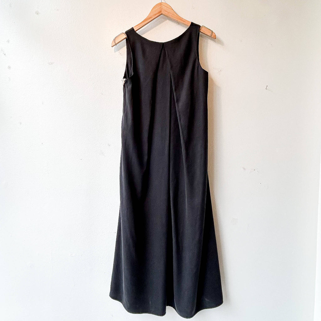This dress features a V-neck collar, side pockets, and a flowy hemline that falls just below the knee. The elegant V design in the back adds a touch of sophistication and elongates the silhouette for a polished look.