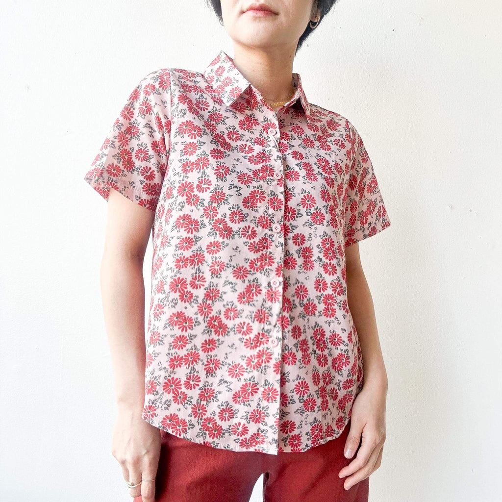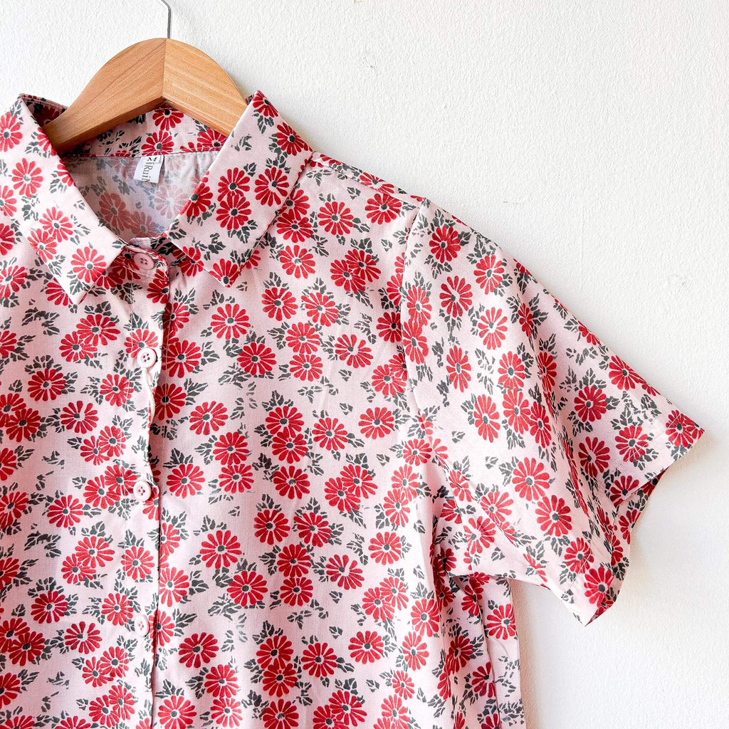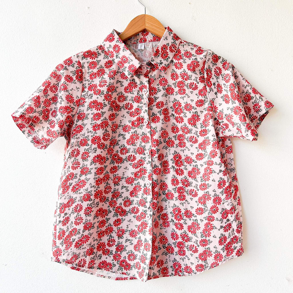 This retro floral short sleeve shirt features a cheerful all-over flower print that adds a vintage charm to your everyday style. Designed with a relaxed silhouette and classic button-up front.