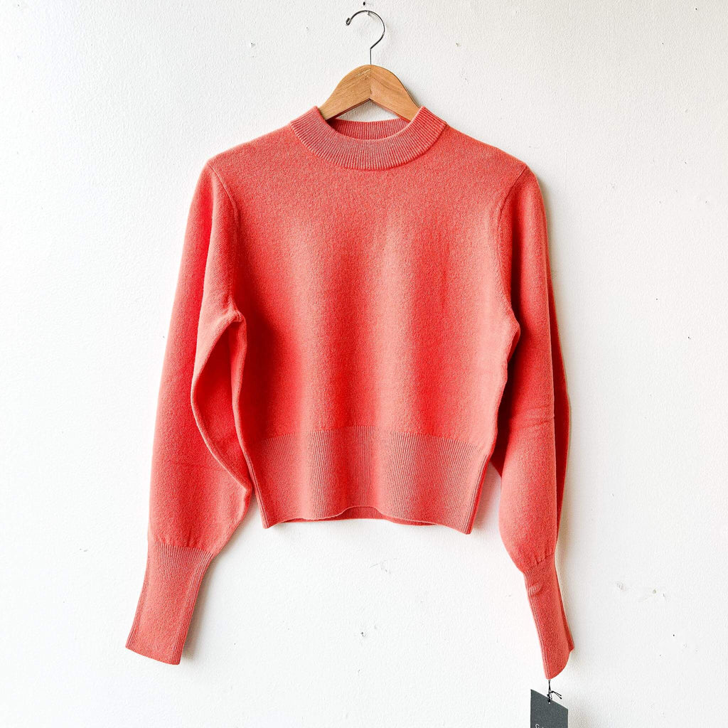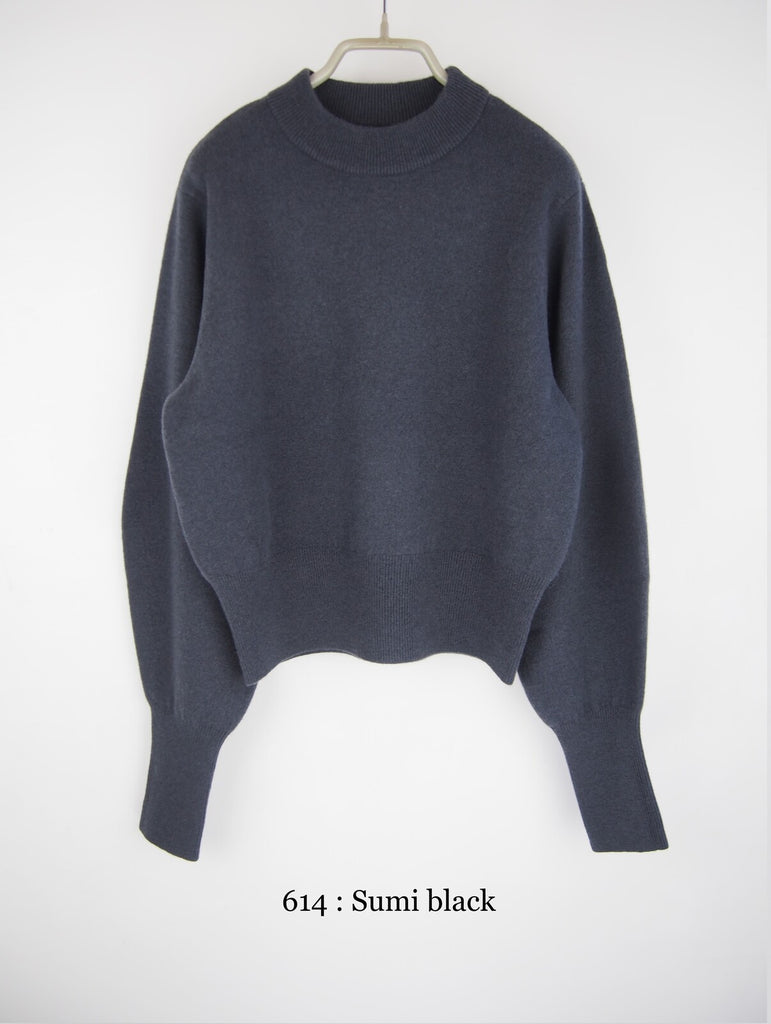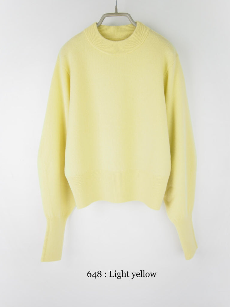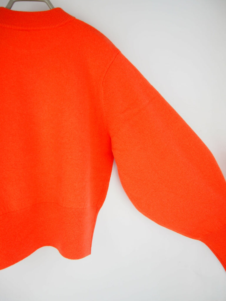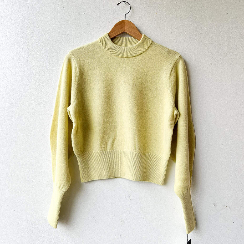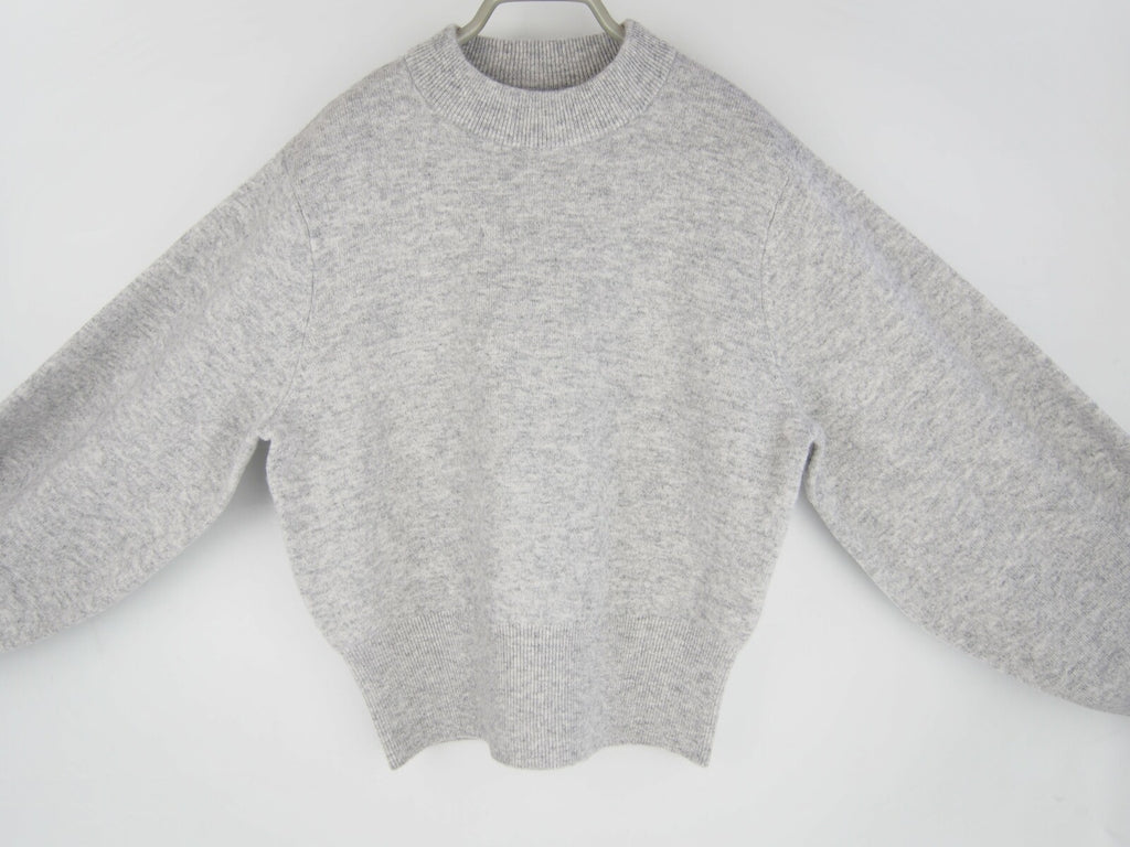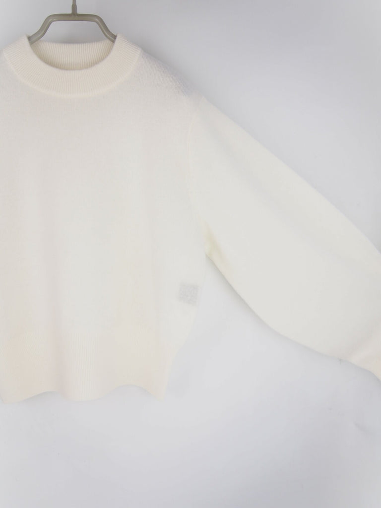 A soft, structured knit with refined shape—this 100% wool pullover features elegant volume sleeves and a sleek high-gauge finish. Crafted with worsted yarns, the fabric feels smooth and resilient with a subtle silky touch, similar to cashmere. A long ribbed cuff and clean round neckline complete the silhouette with a modern, elevated look. Ideal for layering or wearing solo on crisp days.