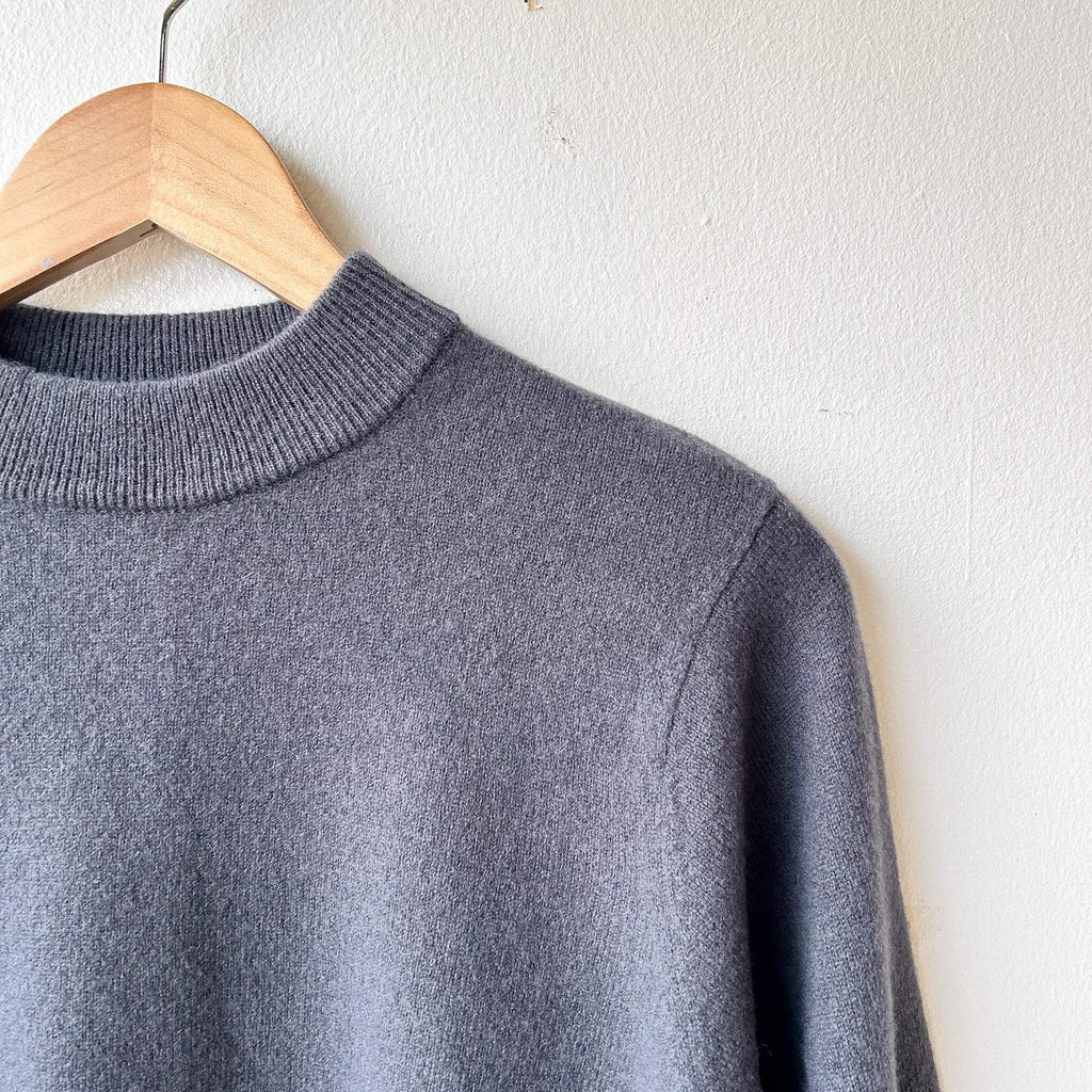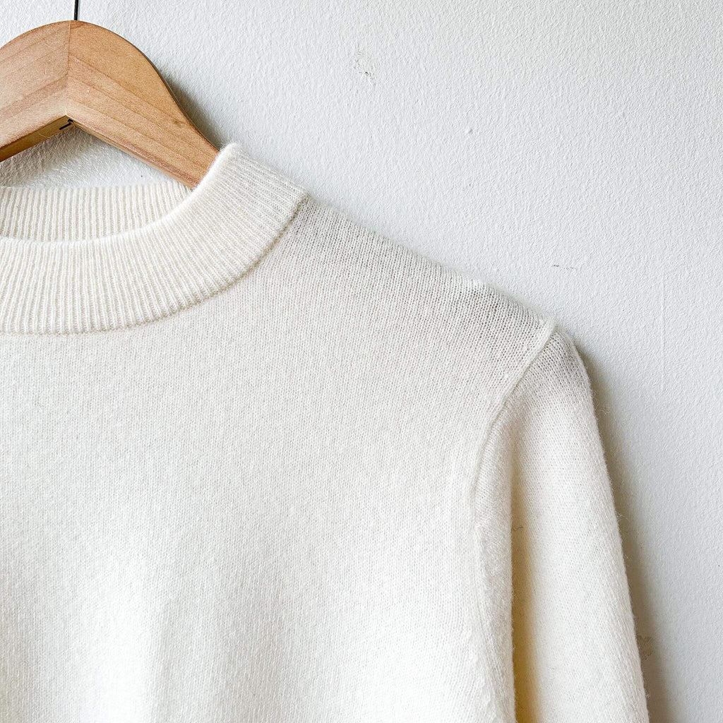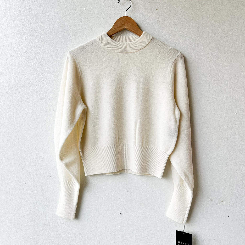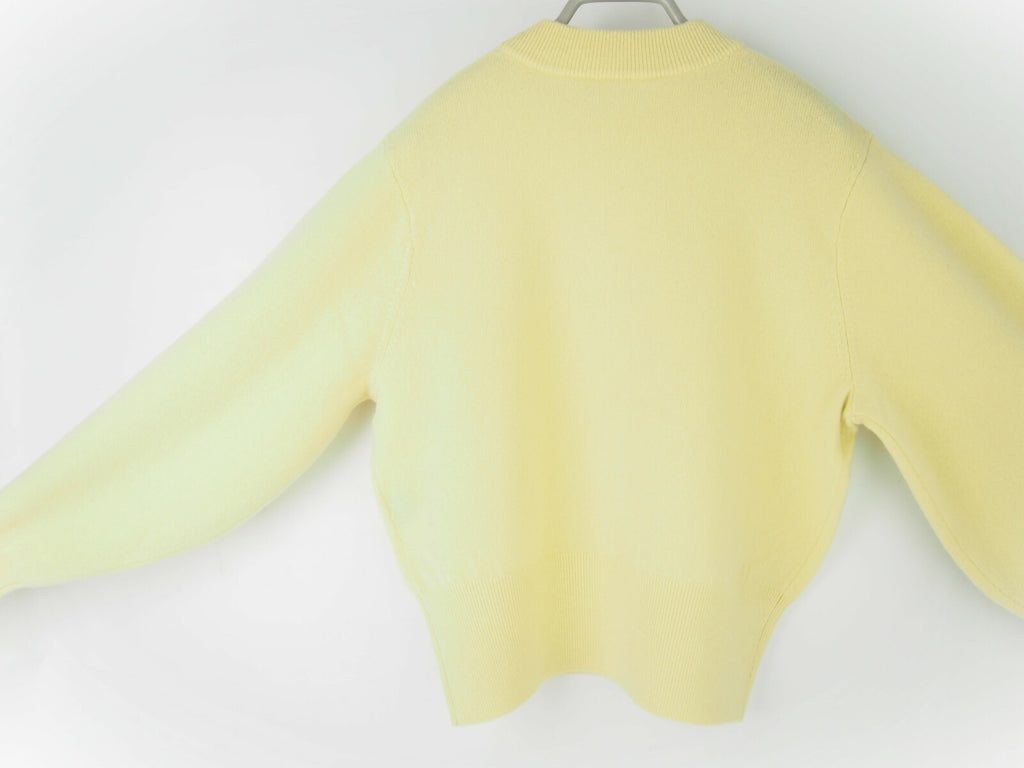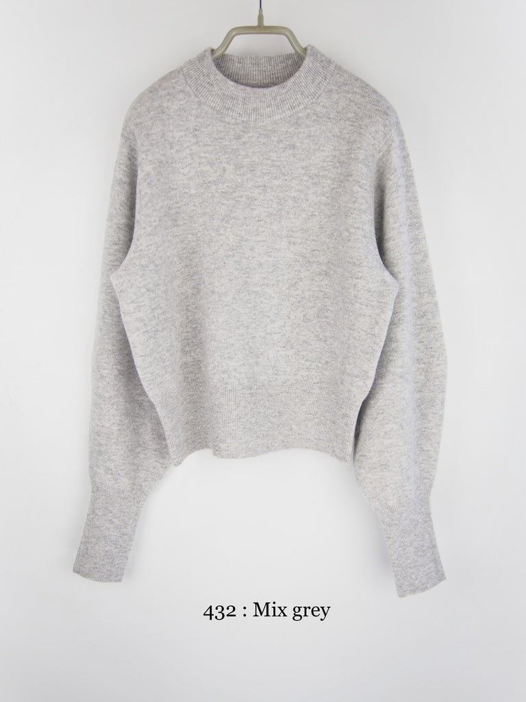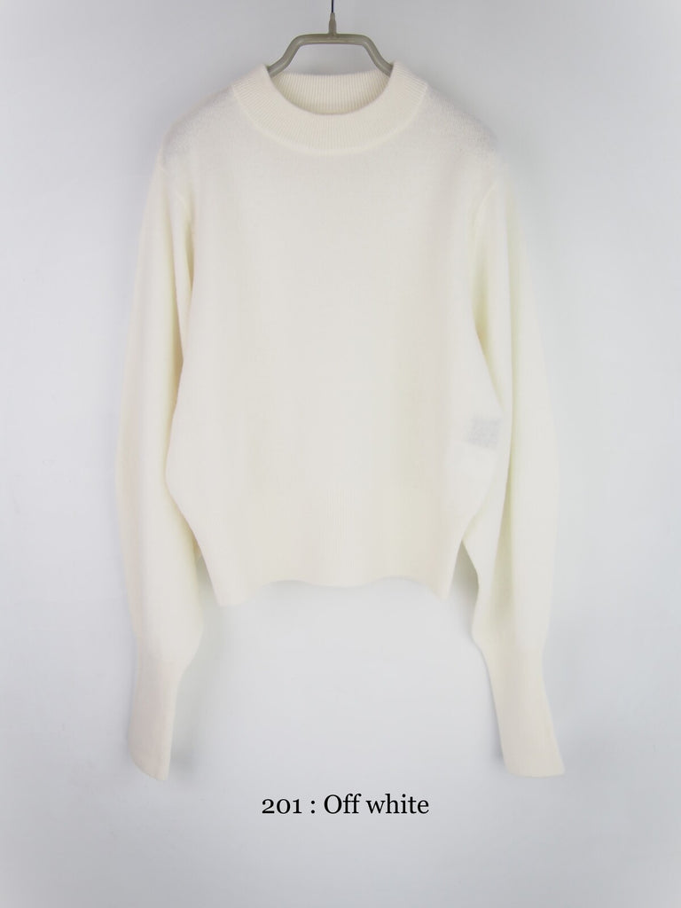 A soft, structured knit with refined shape—this 100% wool pullover features elegant volume sleeves and a sleek high-gauge finish. Crafted with worsted yarns, the fabric feels smooth and resilient with a subtle silky touch, similar to cashmere. A long ribbed cuff and clean round neckline complete the silhouette with a modern, elevated look. Ideal for layering or wearing solo on crisp days.