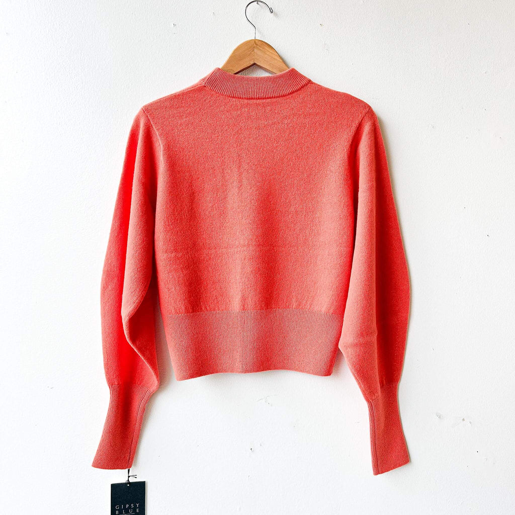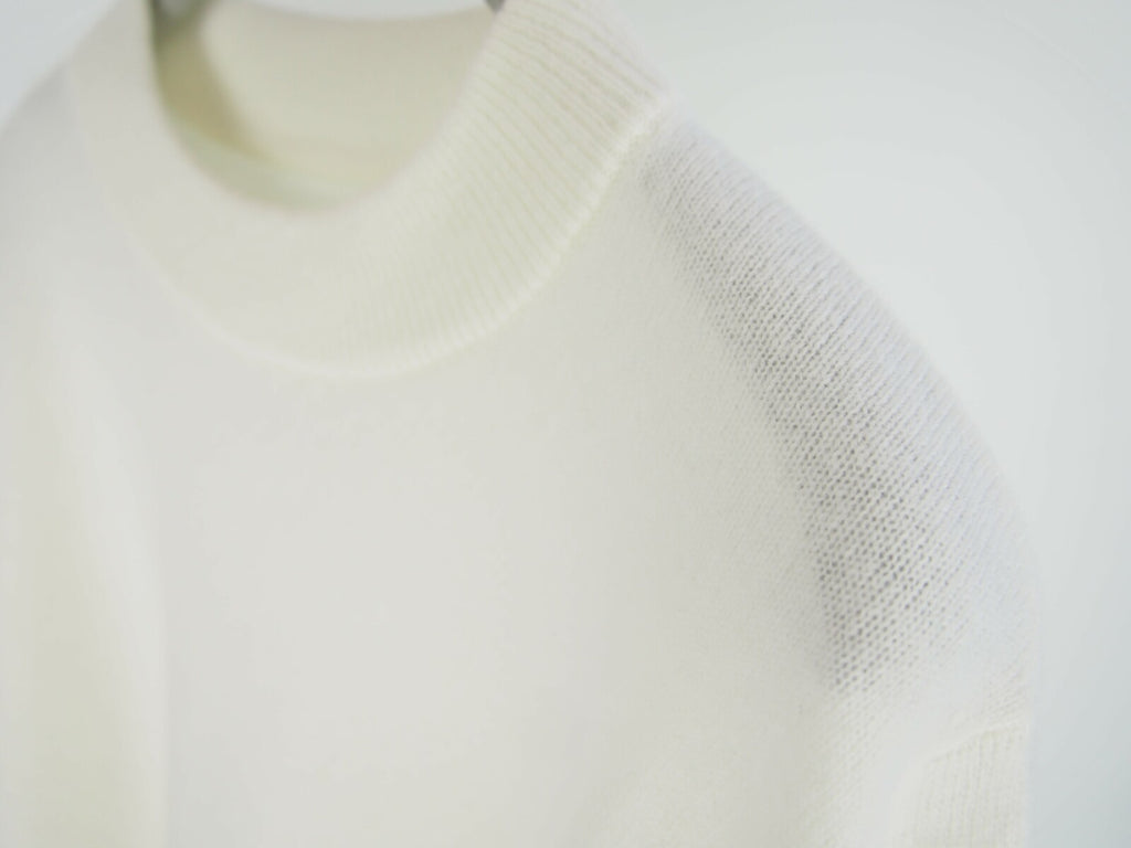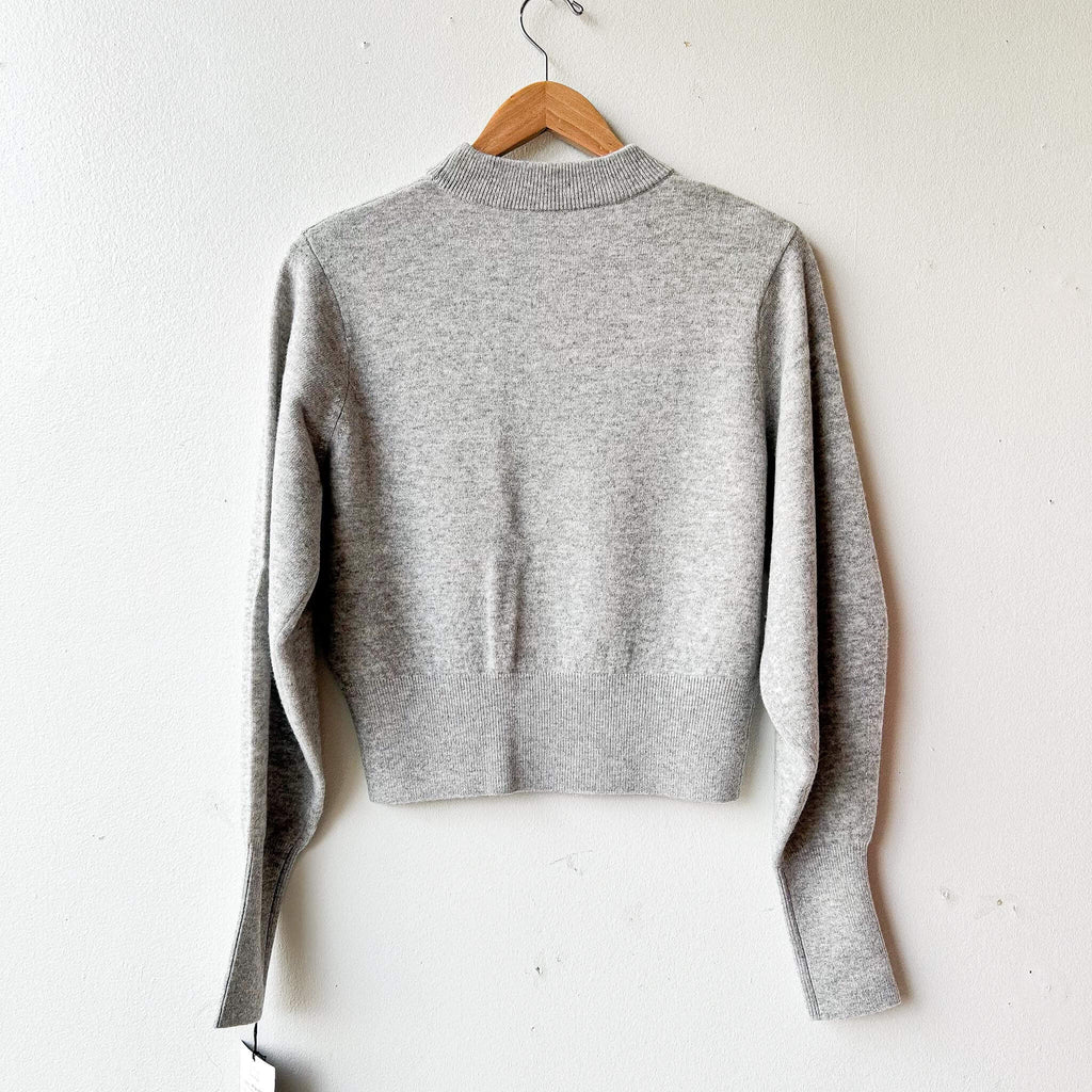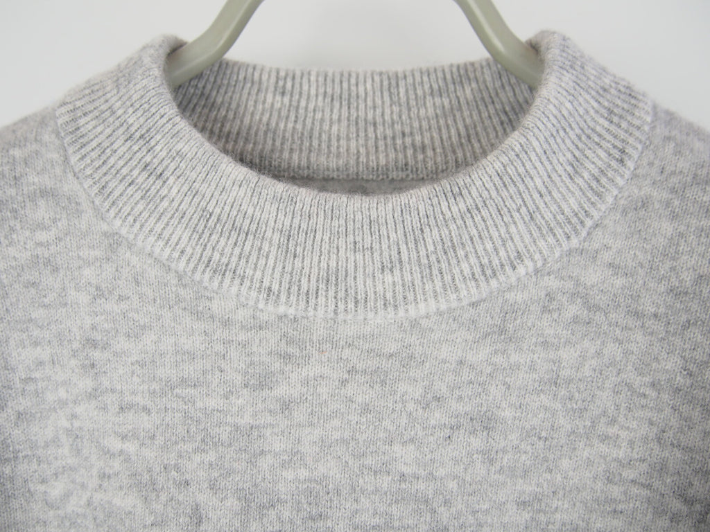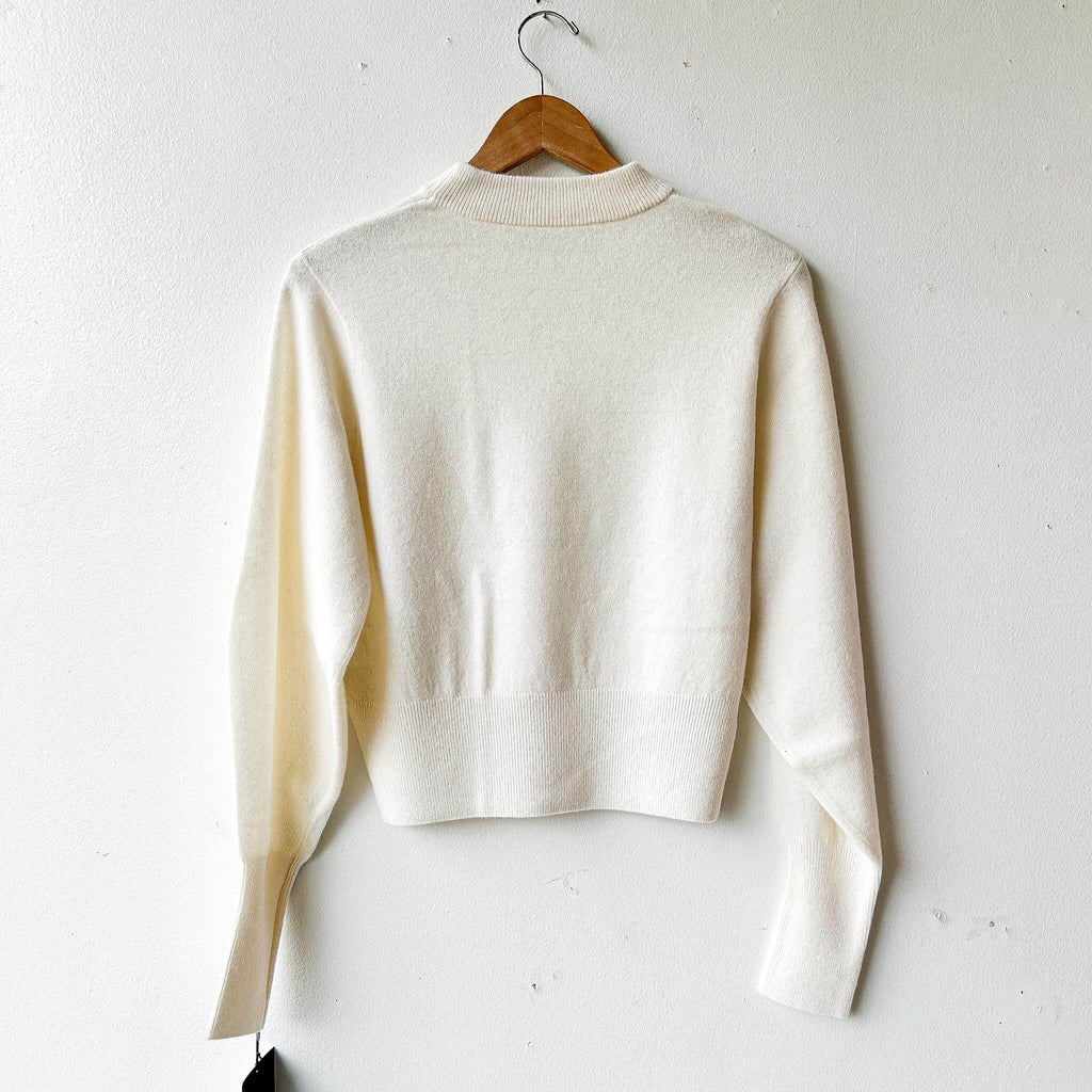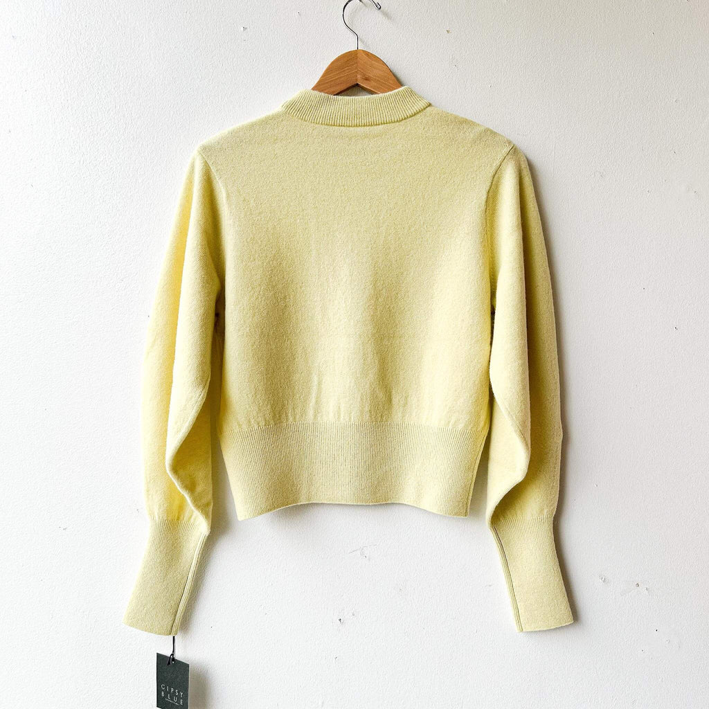 A soft, structured knit with refined shape—this 100% wool pullover features elegant volume sleeves and a sleek high-gauge finish. Crafted with worsted yarns, the fabric feels smooth and resilient with a subtle silky touch, similar to cashmere. A long ribbed cuff and clean round neckline complete the silhouette with a modern, elevated look. Ideal for layering or wearing solo on crisp days.
