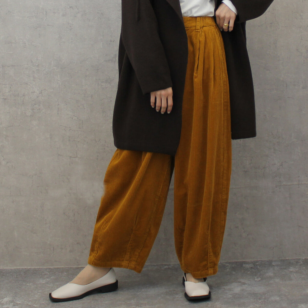 These Corduroy Balloon Pants combine a smooth-touch fabric with the durability of thick-ribbed corduroy, offering both comfort and long-lasting wear. The bold wale texture adds a casual, relaxed edge, while the voluminous balloon silhouette creates a fashion-forward look. Cut in a full-length design, these pants bring a modern, structured touch to everyday outfits.