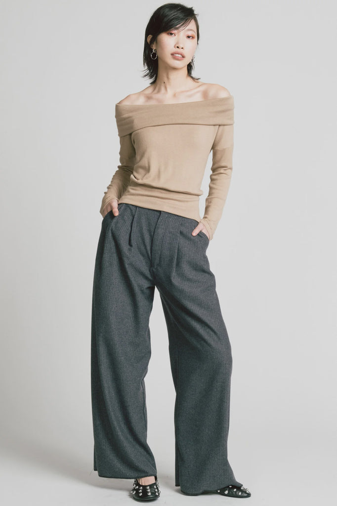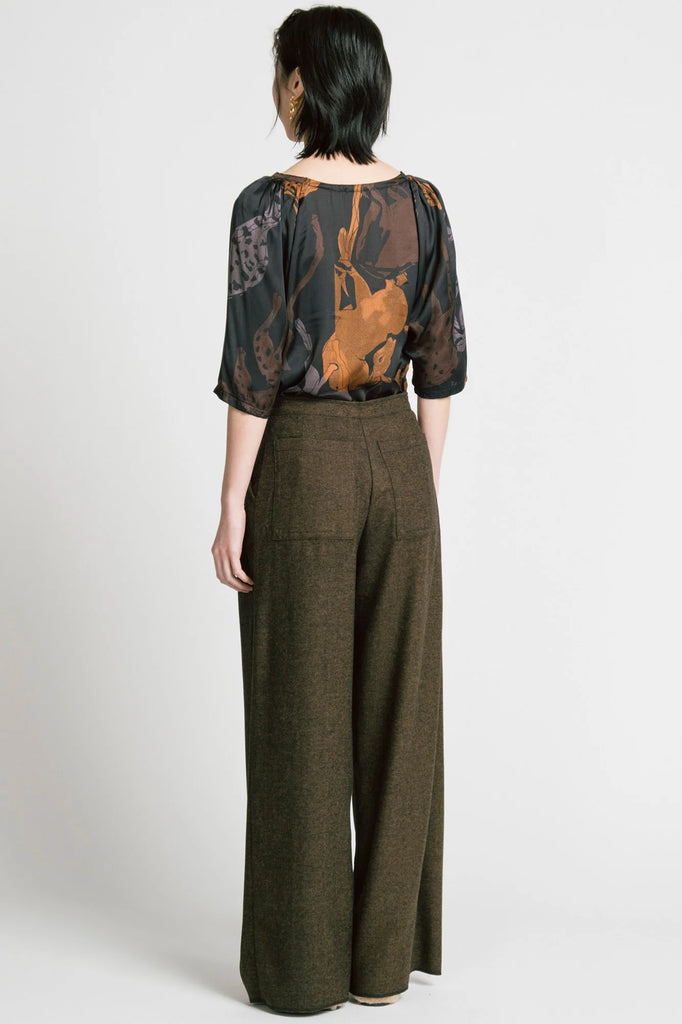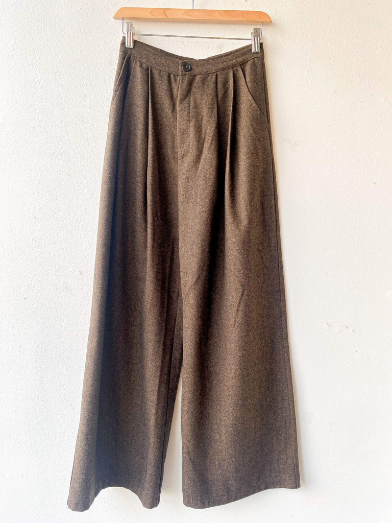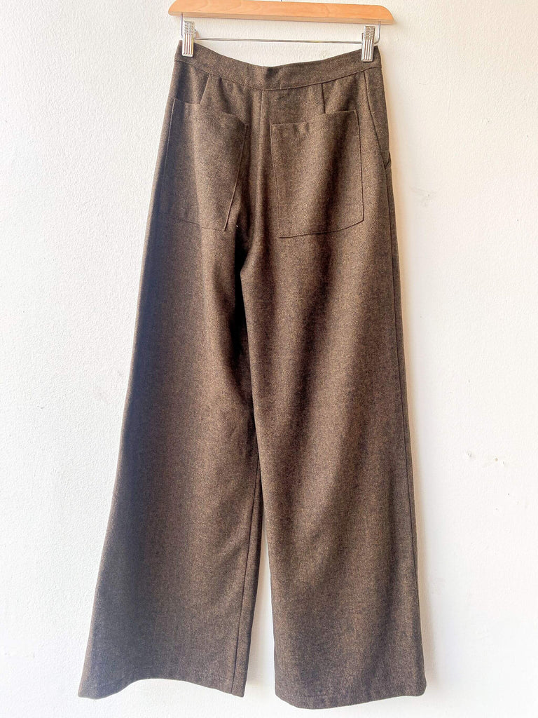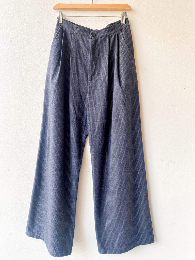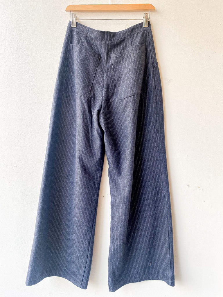 This pant has a wide leg and a fly front with pleats, front pockets and back patch pockets and features a subtle pinstripe. A great work outfit with the matching Cycle jacket.