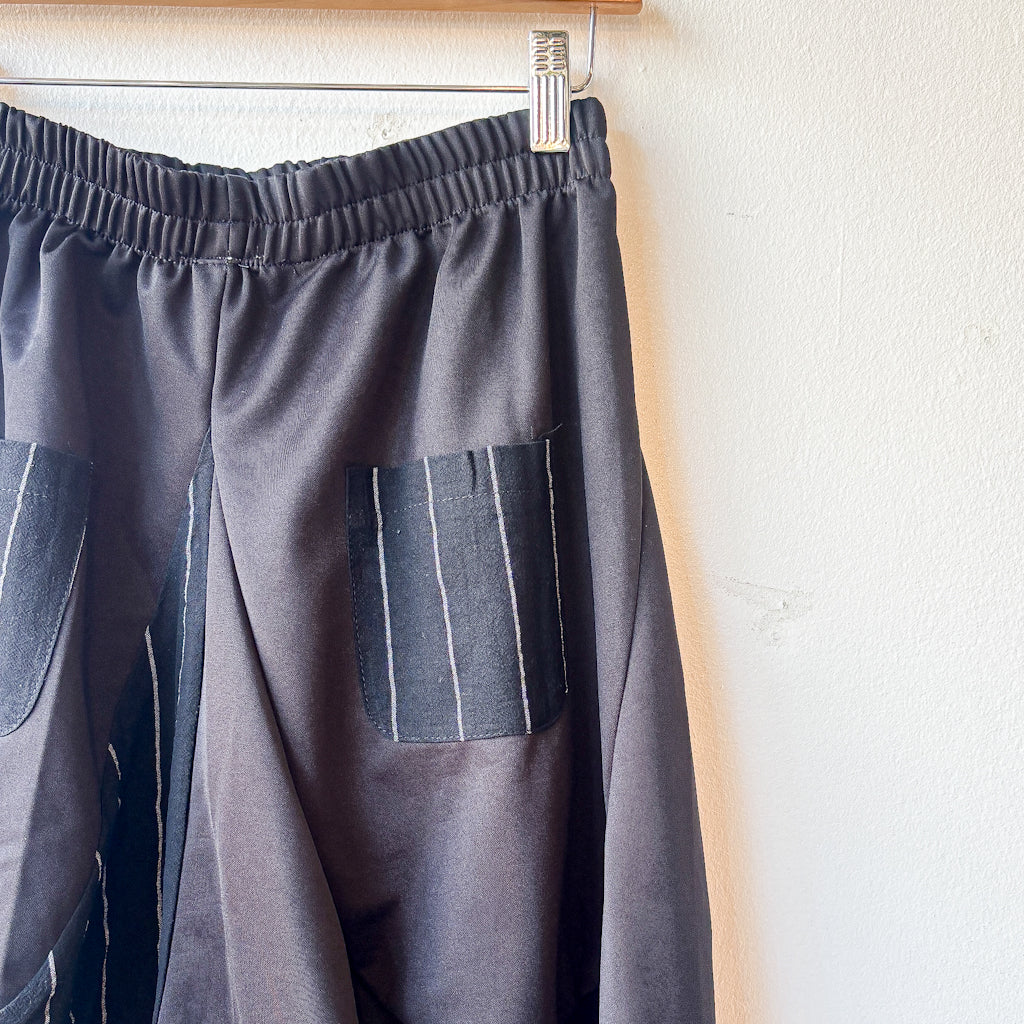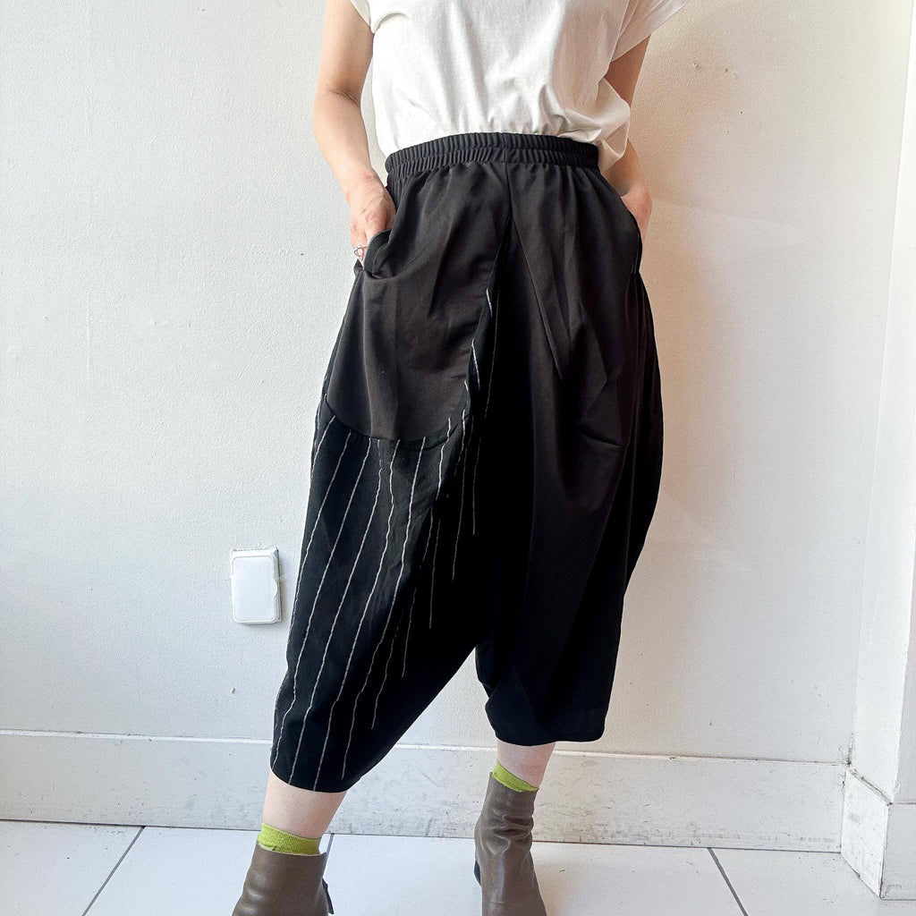 Make a statement with these avant-garde balloon pants featuring a modern pinstripe patchwork design. With a relaxed, cinched silhouette and roomy cut, they offer effortless comfort and artistic flair. Perfect for casual days, creative studio vibes, or urban street style.