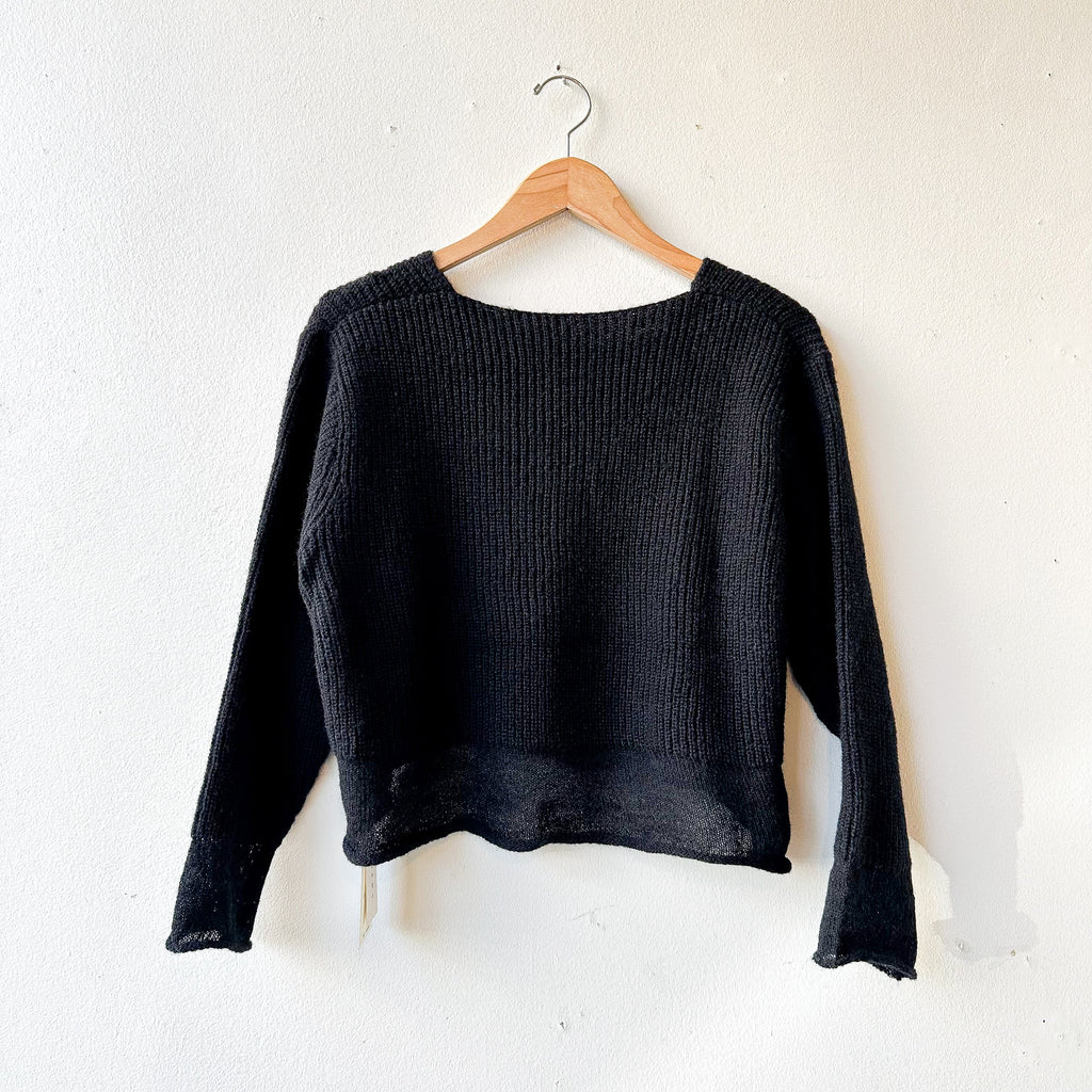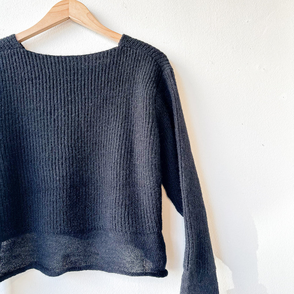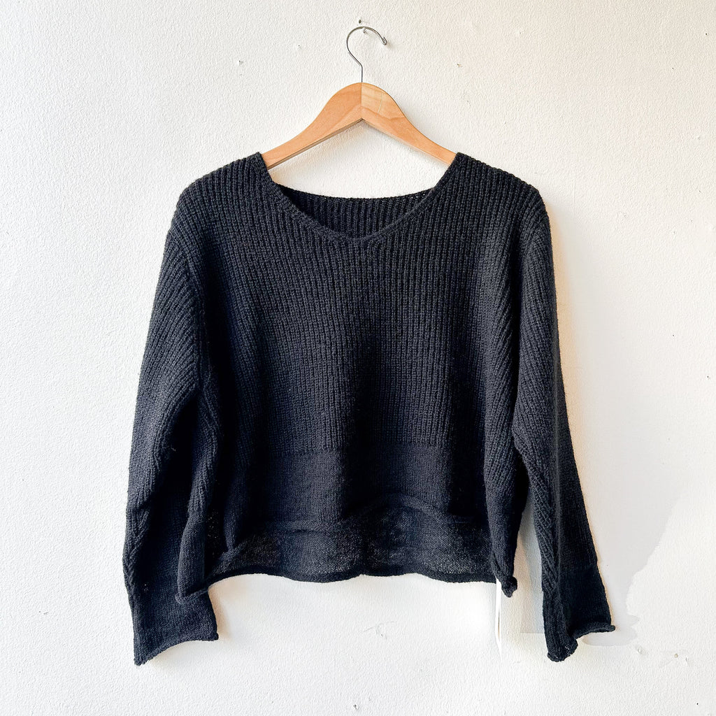 Lightweight wool-blend sweater perfect for early autumn. Soft and breathable with a relaxed V-neck design, it offers effortless comfort and style. The slightly cropped silhouette pairs beautifully with skirts or pants, making it a versatile everyday essential.