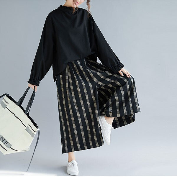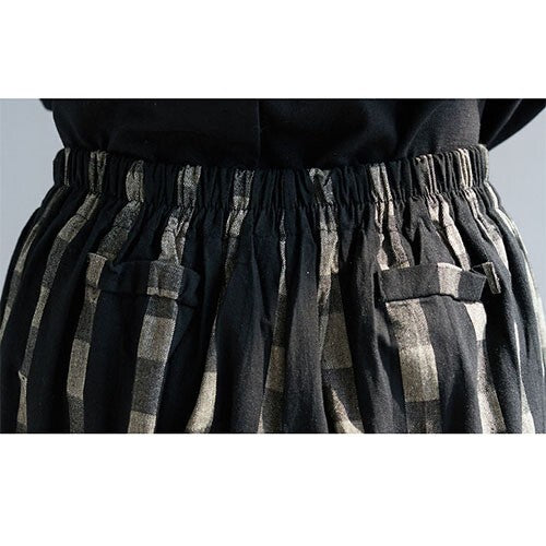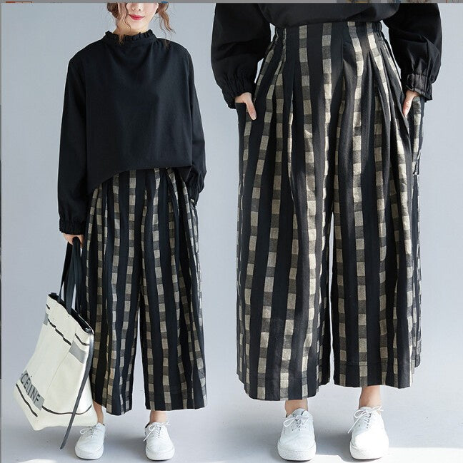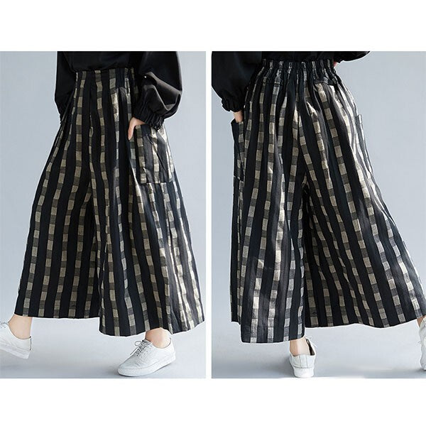 These cotton wide-leg pants feature a bold block check pattern, adding a stylish and modern touch to any outfit. Designed for comfort with a relaxed fit, they are perfect for casual styling while maintaining a chic look.