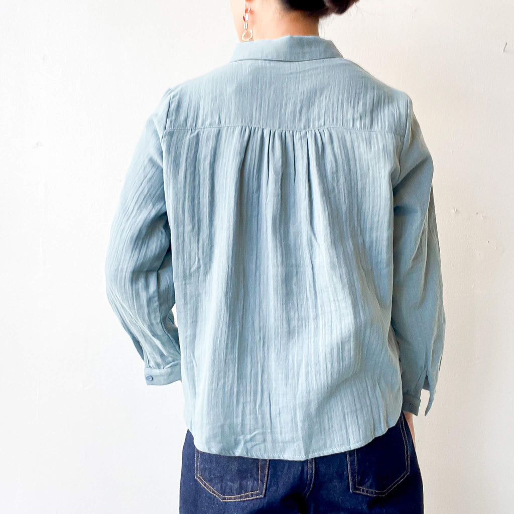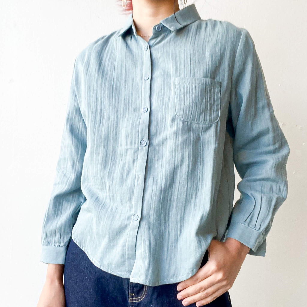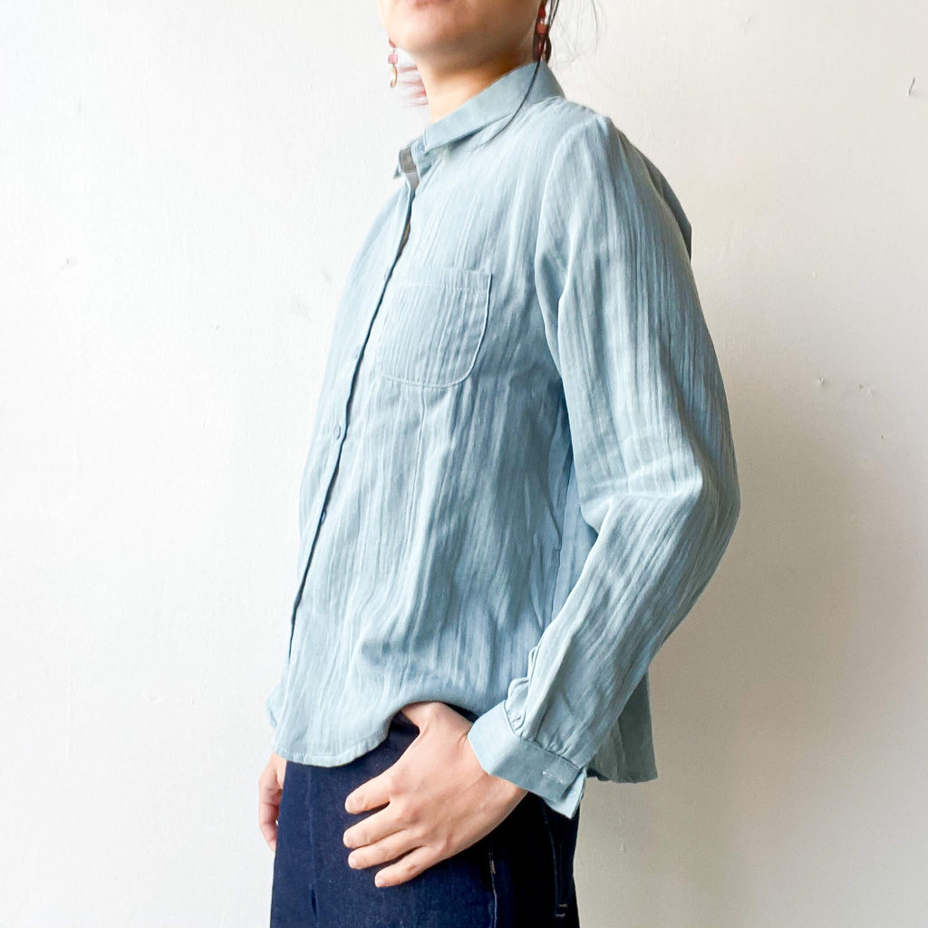 The Cotton Gauze Long Sleeve Shirt features a lightweight, textured cotton fabric with a relaxed fit, button-down front, and chest pocket. Designed with gentle drape and breathability—perfect for layering or wearing solo.