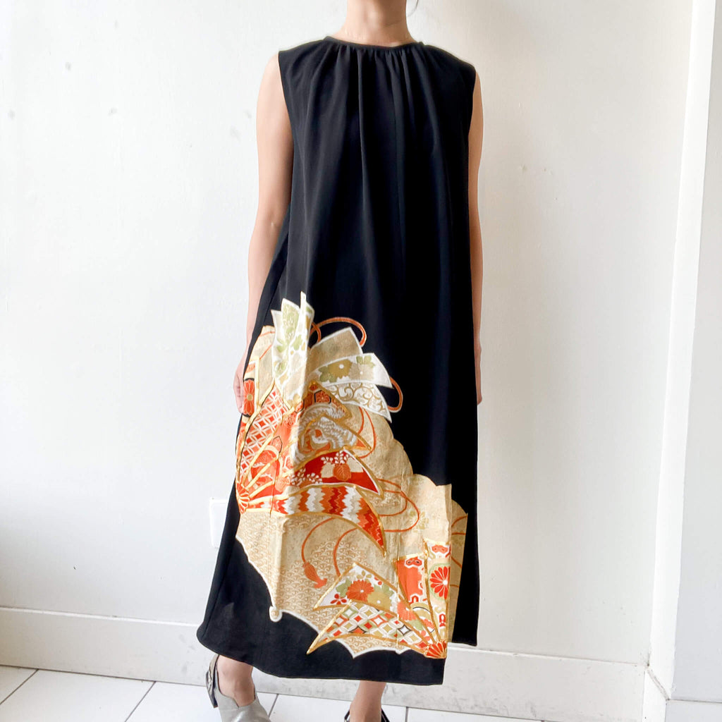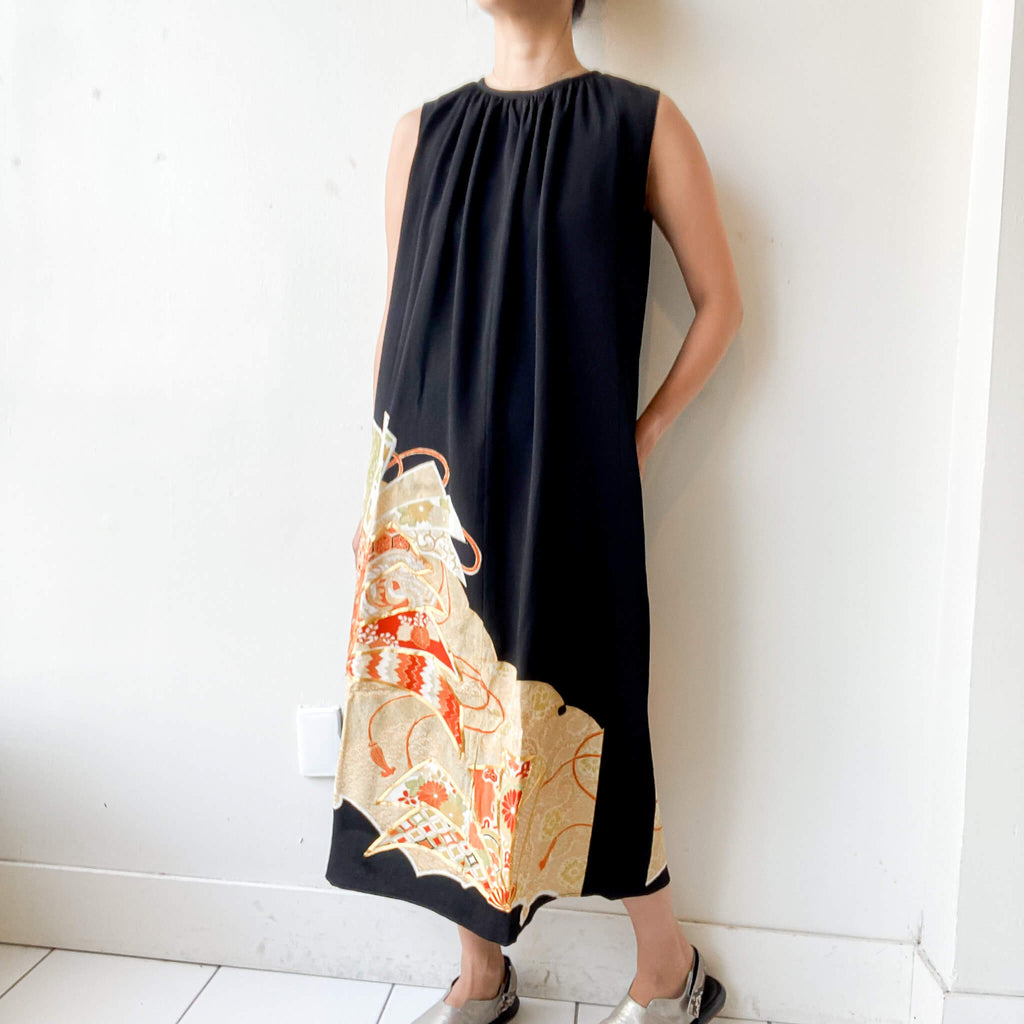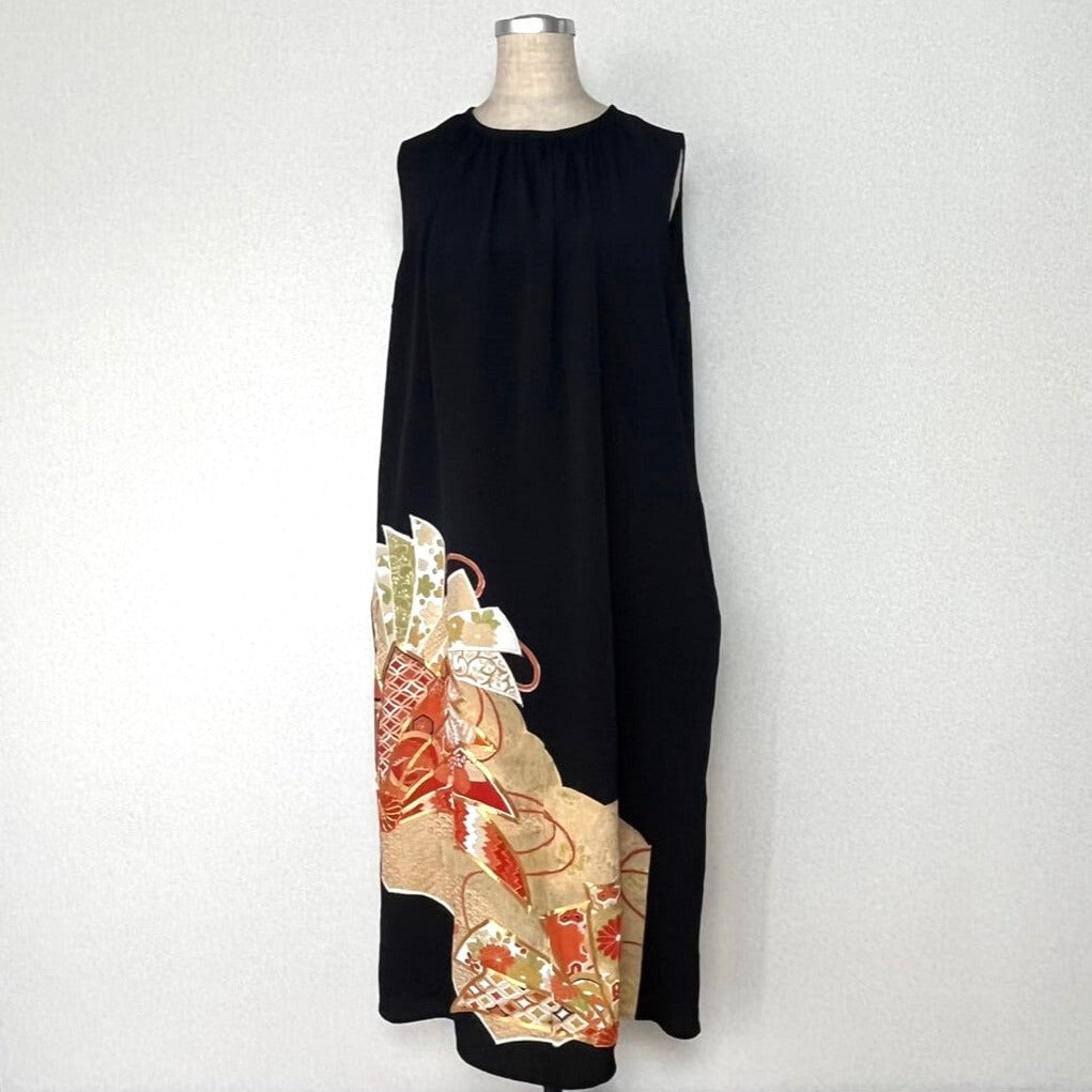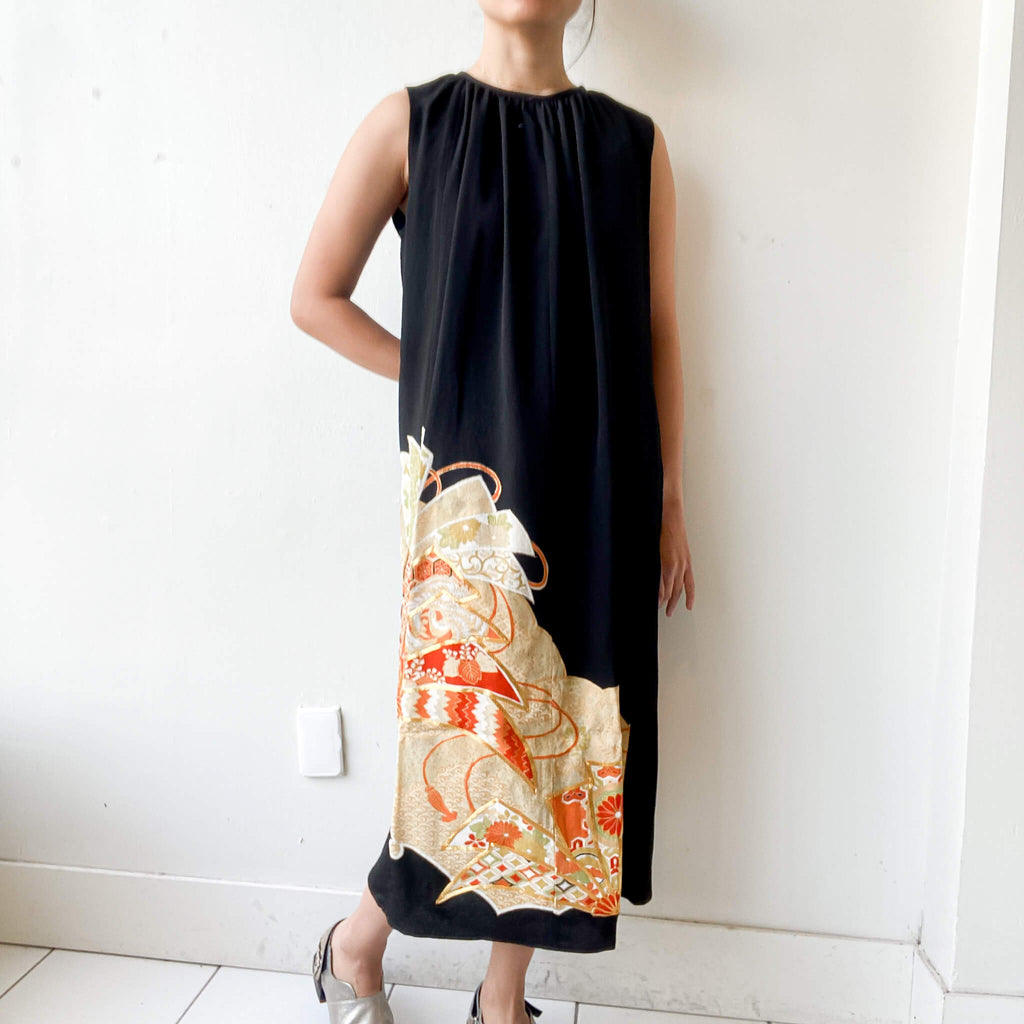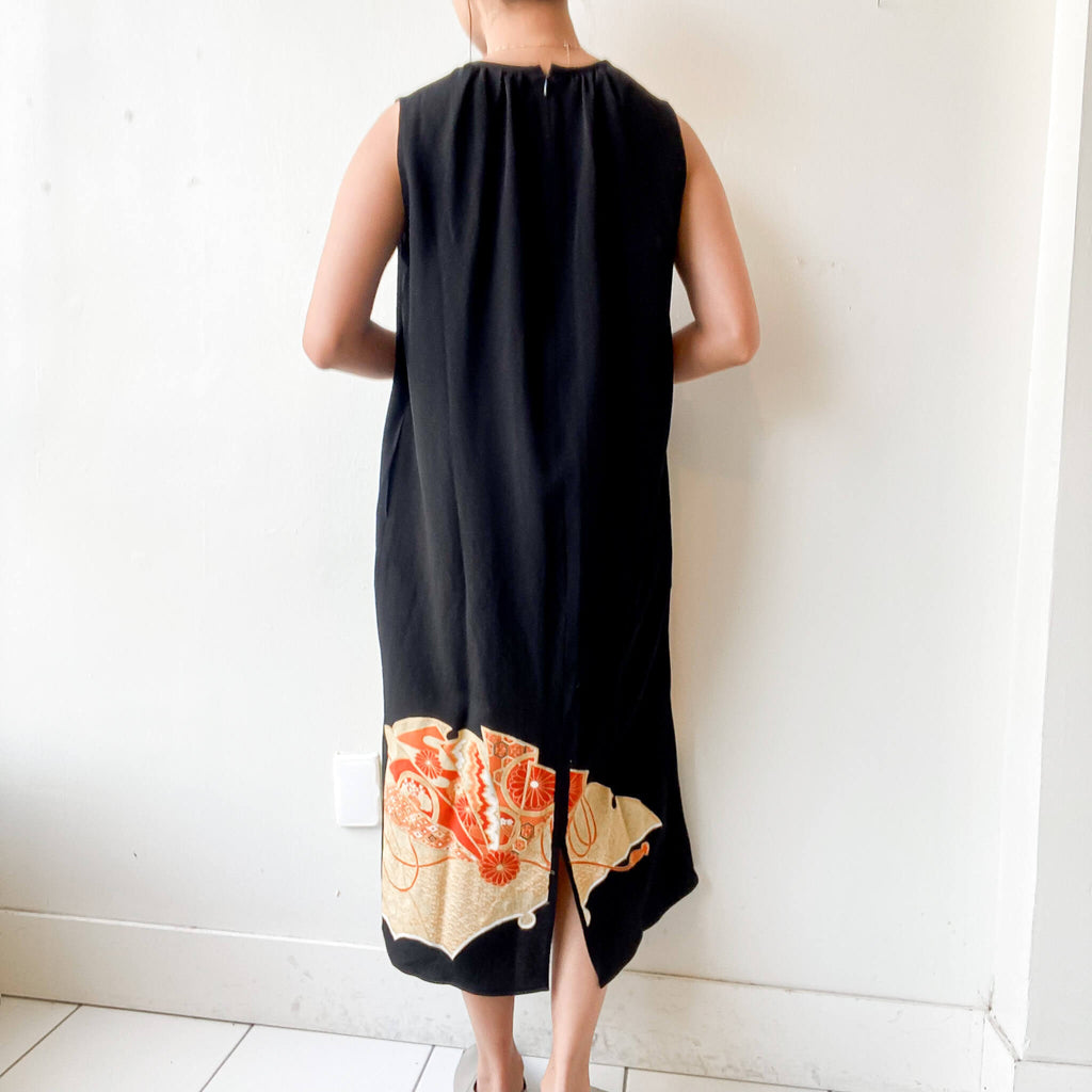 Tsumugi | Vintage Silk Kimono Dress | D3-Black
