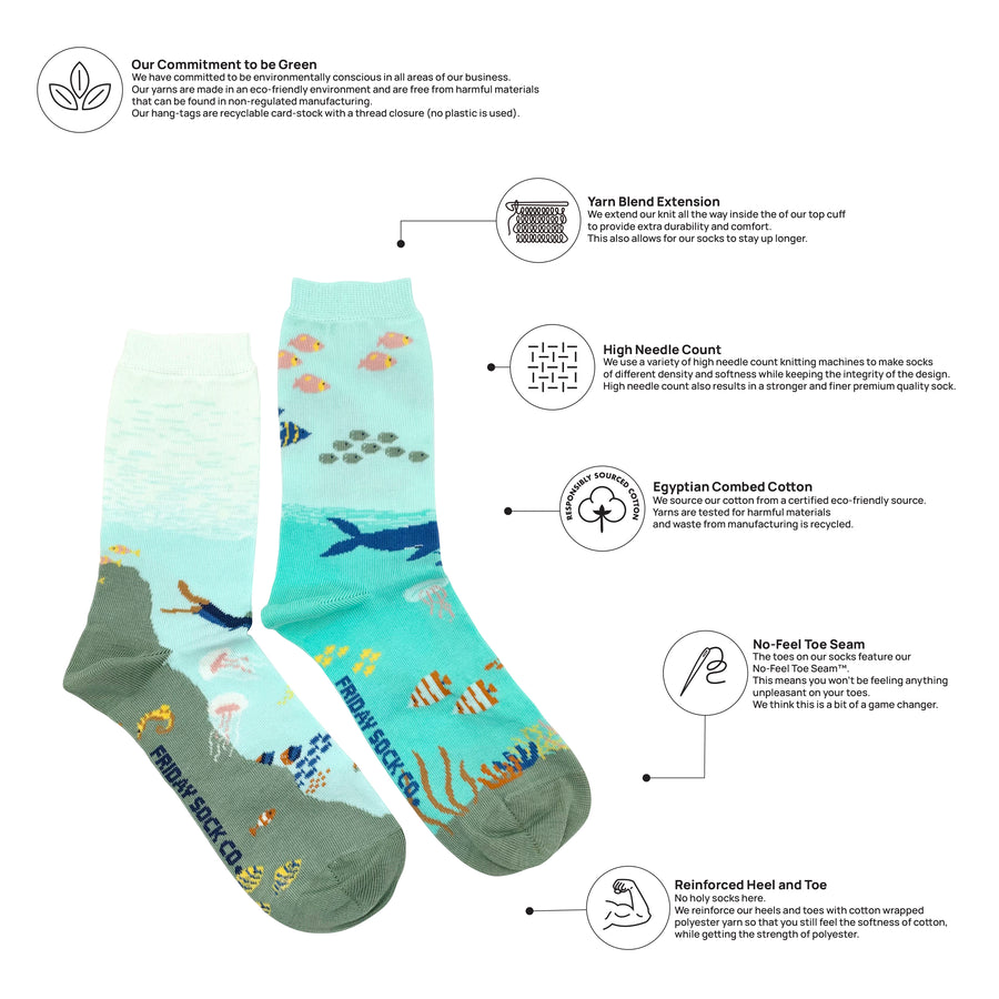 Step into the deep blue sea with these socks featuring a realistic underwater scene.