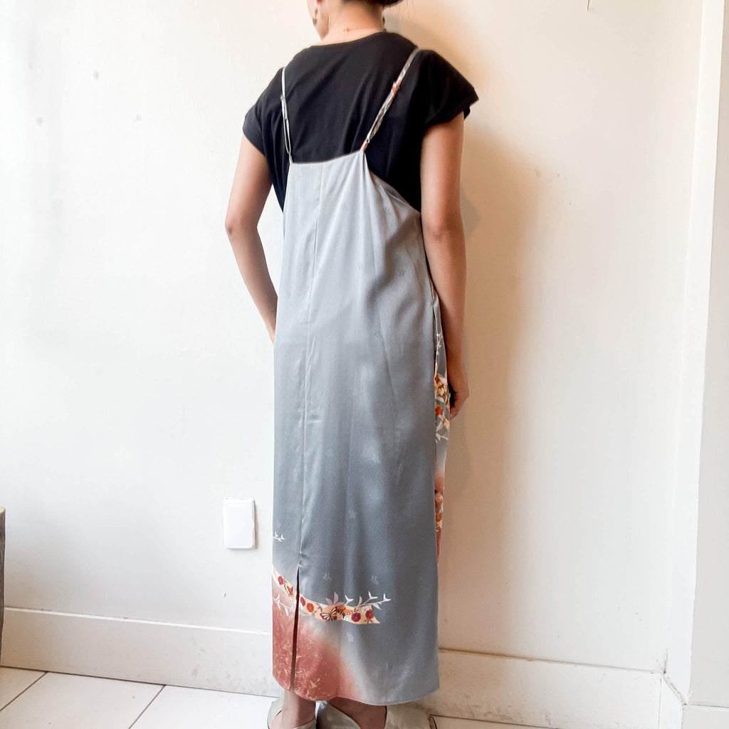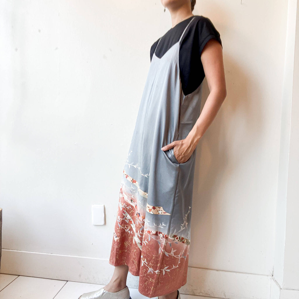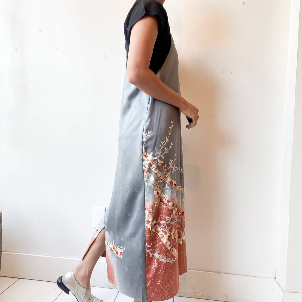 Tsumugi | Vintage Silk Kimono Dress | C2-Grey