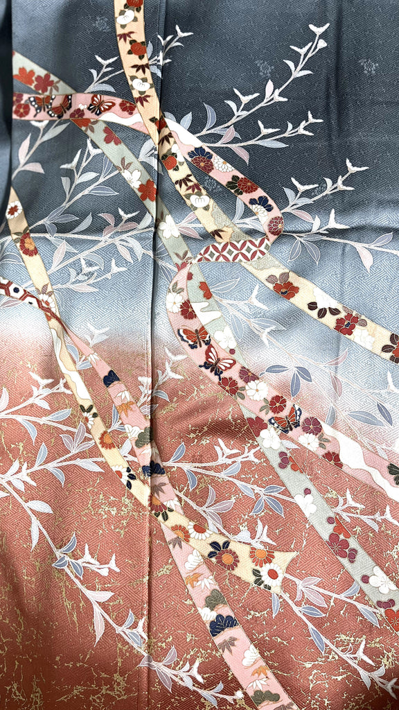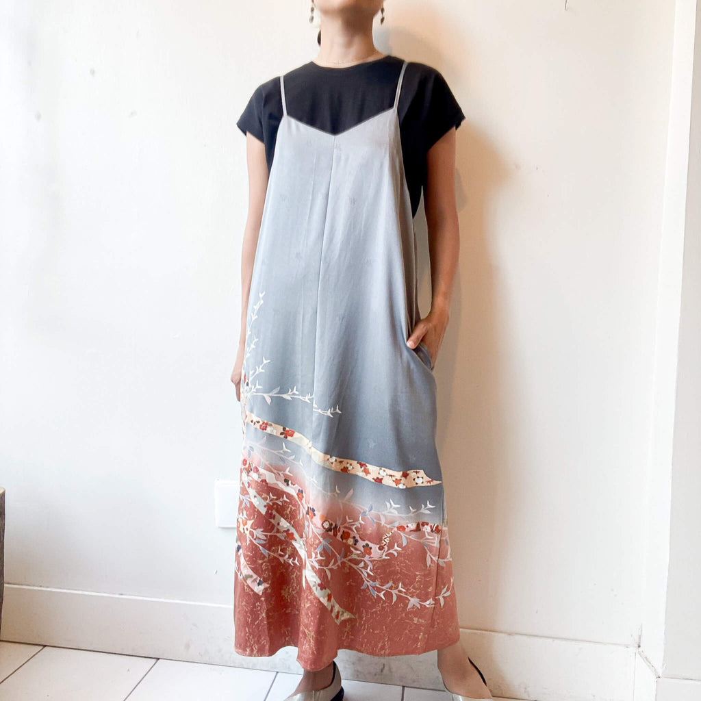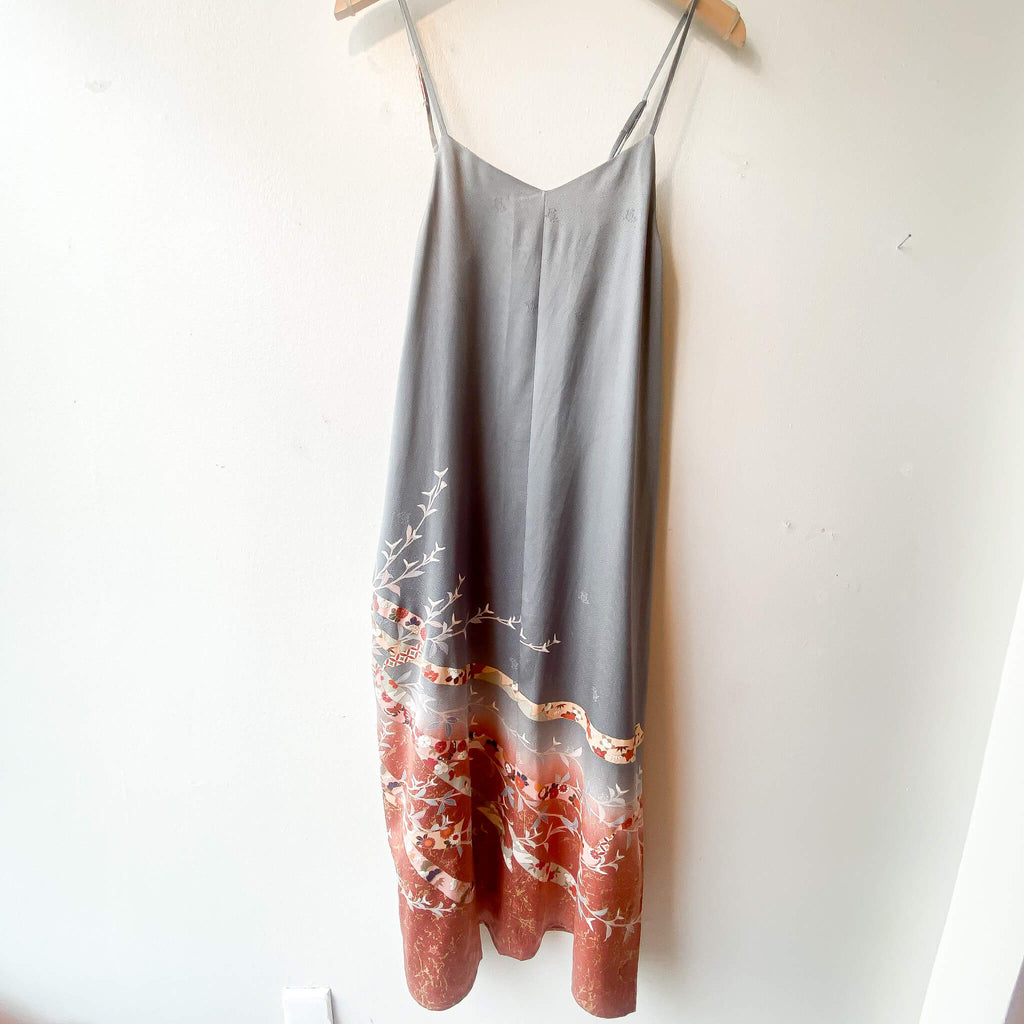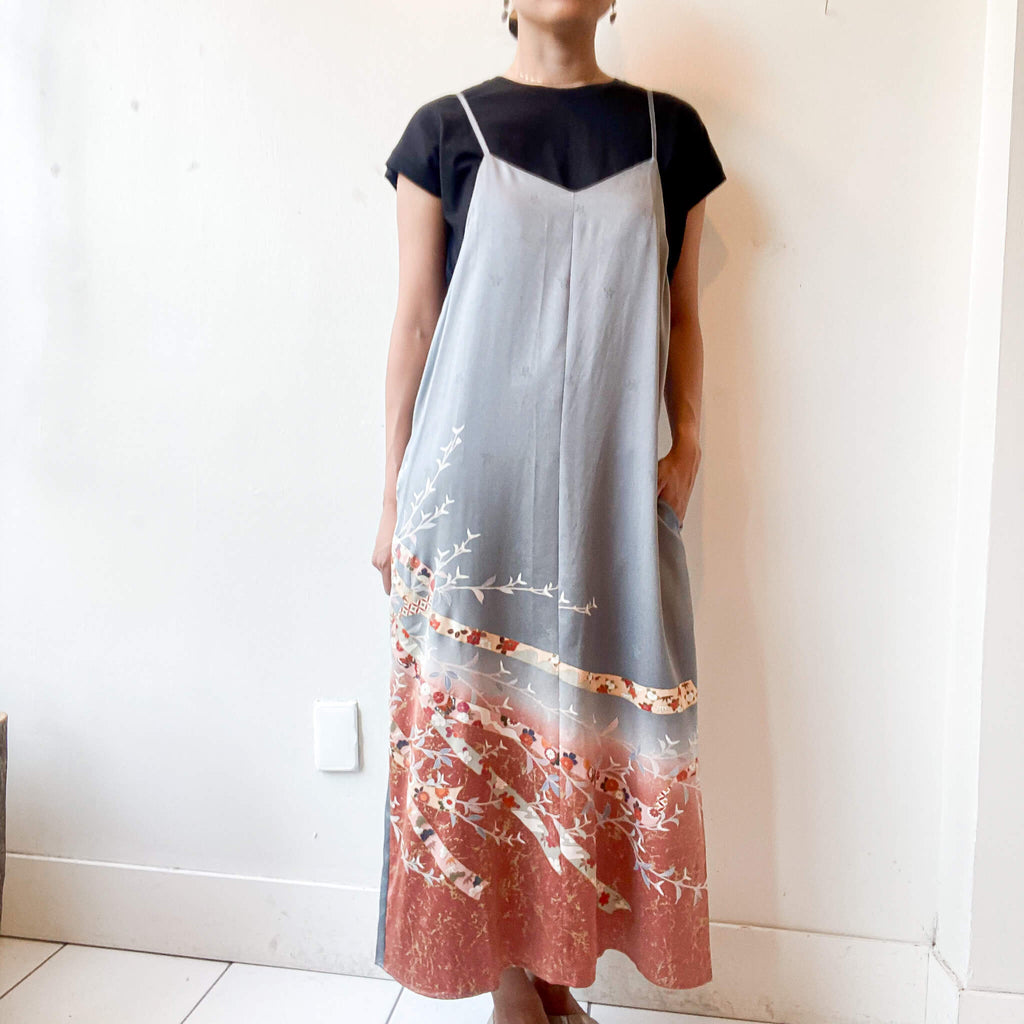 Tsumugi | Vintage Silk Kimono Dress | C2-Grey