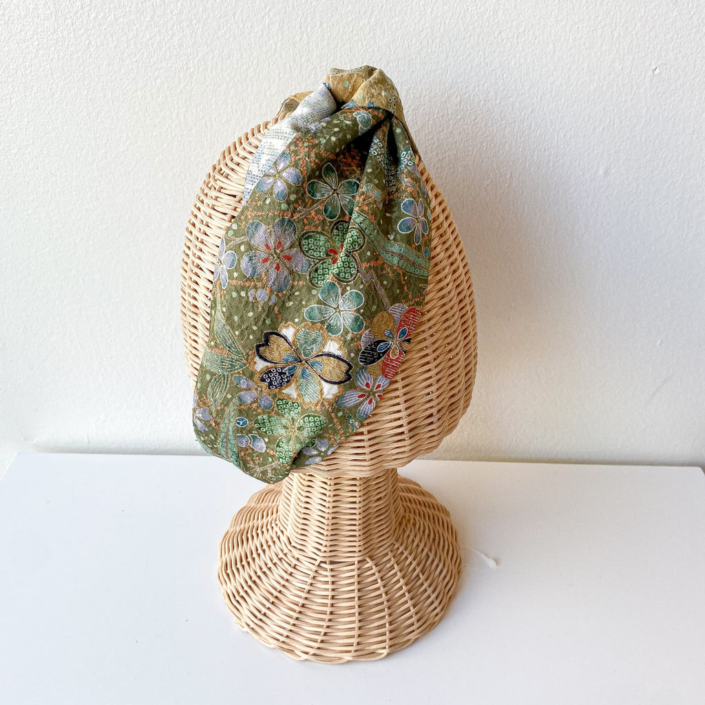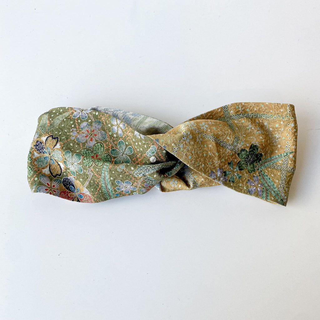 Tsumugi | Vintage Silk Kimono Headband | VD7- Green