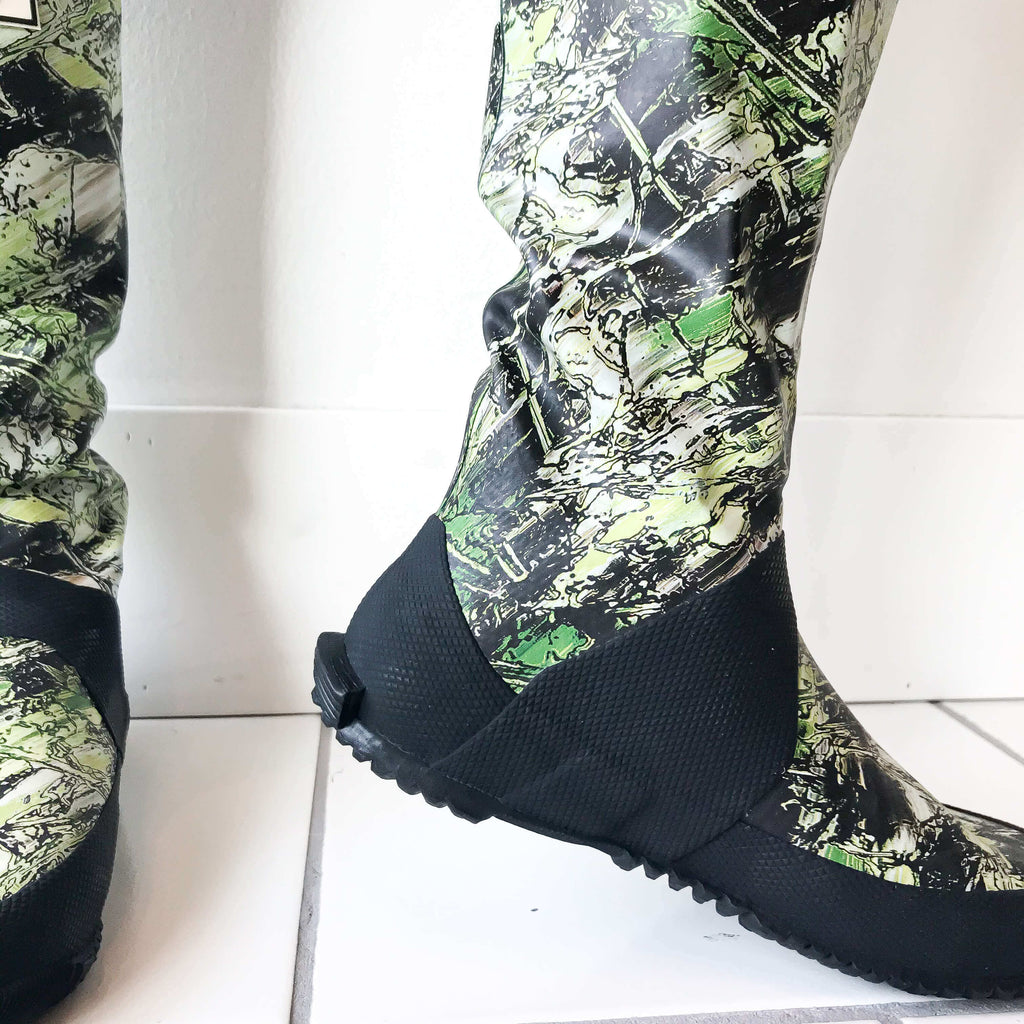 Due to the nature of the thin material, sharp objects may puncture the boots.